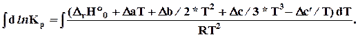 . Для уточнения констант при любой температуре можно воспользоваться уравнением Вант-Гоффа, определив теплоту реакции в заданном интервале по табличным значениям разности теплот образования при температуре Т и абсолютном нуле (