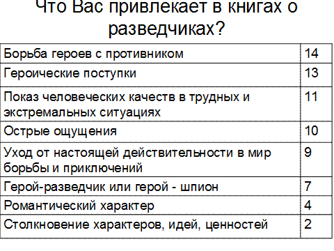 Чем вас привлекают книги о разведчиках? (результаты опроса)