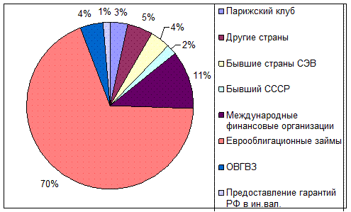 Наибольшую часть государственного внешнего долга составляет задолженность по еврооблигационным займам.