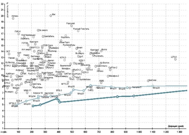 Кривая доходности рынка корпоративных облигаций.[10]