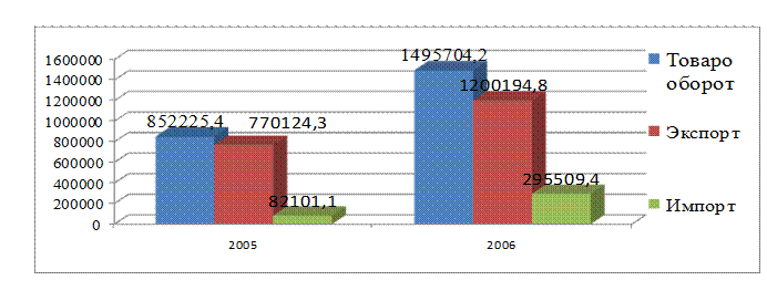 95% внешнеторгового оборота приходится на страны дальнего зарубежья, 5% на страны СНГ.