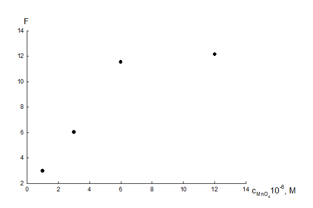 (рис.6). Зависимость прямолинейна в диапазоне концентраций перманганата от 1∙10-6