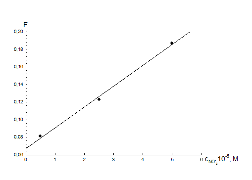 (рис.7). Зависимость прямолинейна в диапазоне концентраций нитрата от 0,5∙10-5