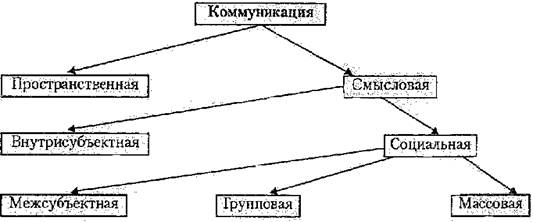 Таким образом, в простейшем случае коммуникацию можно представить как взаимодействие между экономическими агентами (субъектами), опосредованное некоторым объектом (сообщением). Поэтому коммуникация целесообразна (функциональна) и включает перемещение материи и сообщений. Различают следующие типы коммуникации (рис. 1): пространственную (транспортную) и смысловую (семантическую), которая в свою очередь подразделяется на внутреннюю (внутрисубъектную) и внешнюю (социальную). Социальная коммуникация может быть описана на трех уровнях: массовом, групповом и межсубъектном (последние два уровня представляют интерес для микроэкономики).