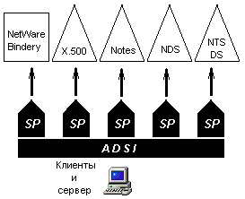 ADSI для различных служб каталогов, a Windows 2000 Server имеет поставщика ADSI для Active Directory. Данная модель используется для доступа к каталогу AD в сервисном приложении.