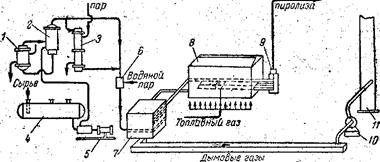 Гомогенный пиролиз благодаря простоте аппаратурного оформления является перспективным процессом, но для его осуществления требуется перегретый пар высоких параметров. В случае использования в качестве теплоносителя продуктов сгорания происходит разбавление ими газа пиролиза.