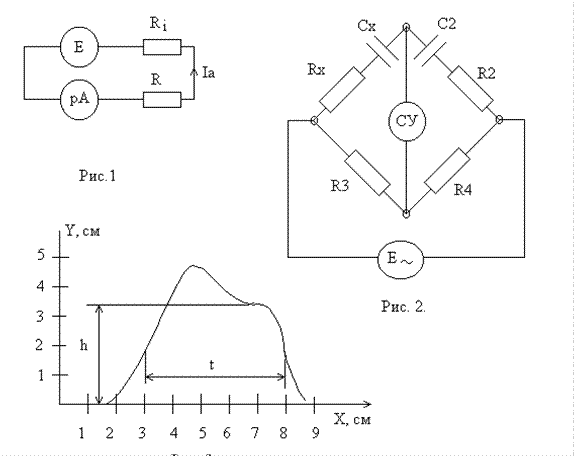 8. Измерить амплитуду h и длительность t импульсного напряжения, осциллограмма которого показана на рис.3. Оценить также погрешность измерения амплитуды импульса, если коэффициент отклонения Ку и развертки Кх, а погрешность коэффициента отклонения dко,
