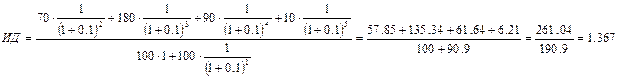 По условиям задачи 1 определить индекс доходности (ИД) проекта. По зависимости (2)