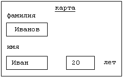 Записи. Пример:  Для реализации объединения данных разного типа в языке Pascal существует специальная структура - запись. Объявление записи начинается с зарезервированного слова record, за которым перечисляются имена и типы всех составляющих записей ее полей. Заканчивается объявление скобкой end. Пример: type karta = record family: string[20]; name: string[15]; age: integer; end; При обращении к записи в программе указывается имя записи и через точку имя поля. Пример: karta.family:='Иванов'; karta.name:='Иван'; karta.age:=20; Для упрощения обращения к записи может быть использован оператор работы со структурой with. Пример: with karta do begin family:='Иванов'; name:='Иван'; age:=20; end; Полями записи наряду с простыми типами могут быть и данные структурированных типов, например, массивы или записи. Пример 1: var z: record pole1: string; pole2: array [1..10] of byte; end; Begin for i:=1 to 10 do read (z.pole2[i]); End. Пример 2: объявите запись, содержащую сведения о фамилии, дате рождения и адресе студента. var student: record fam: string[15]; data: record day: 1..31; mes: 1..12; year: integer; end; adres: record street: string[15]; dom: byte; kvart: byte; end; end; Begin with student do begin fam:= 'Иванов'; with data do begin day:= 30; mes:= 4; year:= 1987; end; with adres do begin street:= 'Туполева'; dom:= 22; kvart:= 154; end; end; End. Для использования в программе набора с одинаковыми полями используются массивы записей. Пример: объявить массив из десяти записей. 1 вариант решения: var A: array [1..10] of record fam: string; name: string; end; 2 вариант решения: type student = record fam: string; name: string; end; var A: array [1..10] of student;