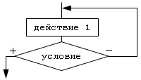 Для реализации циклов с предусловием используется составной оператор, включающий оператор while, do, операторные скобки. В общем виде цикл реализуется записью: while <условие> do <действие>; Если тело цикла содержит более одного действия, то необходимо использовать операторные скобки: while <условие> do begin <оператор 1>; <оператор 2>; ... <оператор n>; end; 2. Цикл с постусловием.