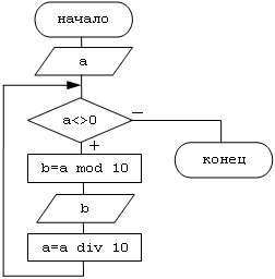 Для реализации цикла используется составной оператор, состоящий из операторов repeat и until. В общем виде цикл записывается так: repeat <действие>; until <условие>; Пример: задано целое число. Вывести на печать все цифры введенного числа. 1 способ: