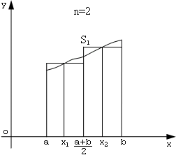 Для нахождения приближенного значения определенного интеграла разобъем отрезок AB на две равные части (величину 2 обозначим через n). В середине каждого отрезка восстановим перпендикуляры и построим соответствующие прямоугольники. Вычислим площадь S1