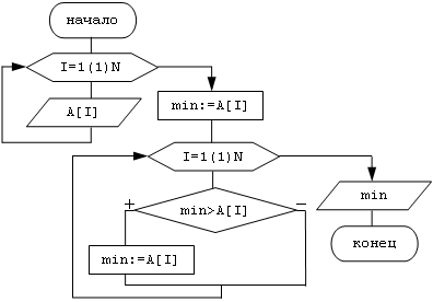 program min; const n=10; var i: byte; a: array [1..n] of real; min: real; begin for i:=1 to n do read (A[i]); min:=A[1]; for i:=1 to n do if min>A[i] then min:=A[i]; write (min); end.