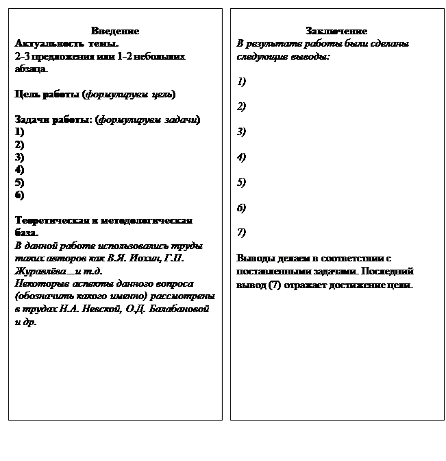 Схема оформления введения и заключения