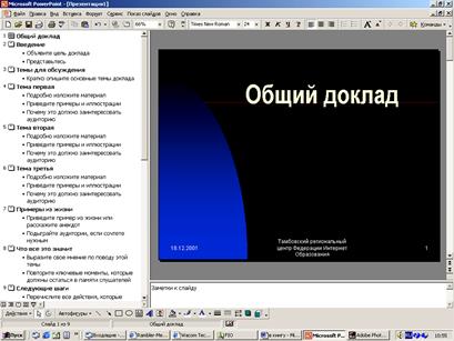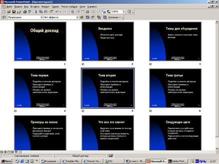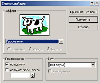 Слайды демонстрируются без речевого сопровождения, которое можно было бы записать с помощью команды Показ слайдов→Звукозапись;