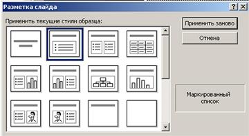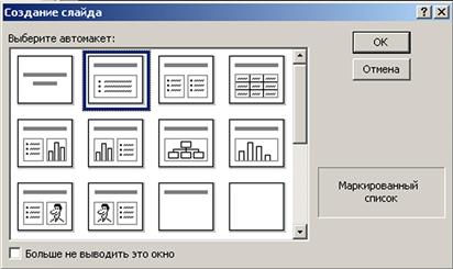2. Из вариантов автомакетов выберите макет слайда со списком и нажмите OK