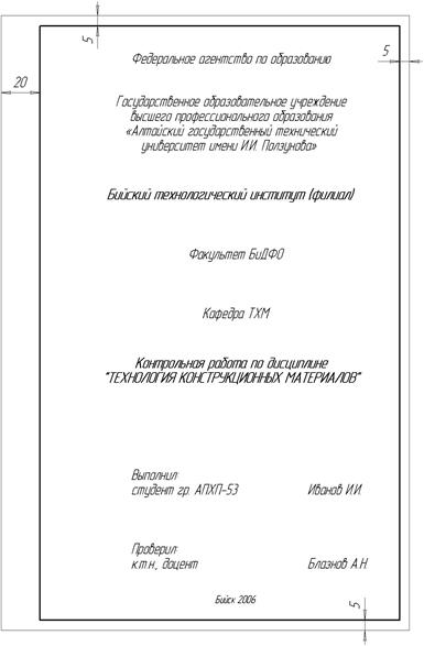 Методические рекомендации с вариантами контрольной работы по курсу «Технология конструкционных материалов» для студентов заочной формы обучения специальностей 260601 «Машины и аппараты пищевых производств», 240706 «Автоматизированное производство химических предприятий», 655800 «Пищевая инженерия малых предприятий», 240901 «Биотехнология»