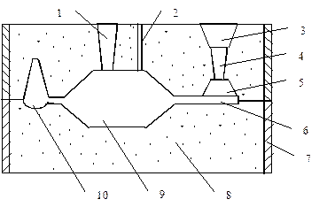 Основными элементами литниковой системы являются литейная воронка 3, стояк 4, шлакоуловитель 5, питатель 6, выпор-канал 2, прибыли 1, 10 (рисунок 1.1).