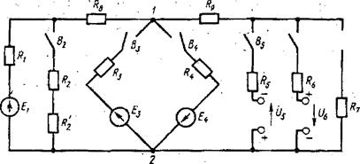 Вариант электрической цепи, включая участок 1 - 2 (схемы б - з), ограниченный пунктиром на схеме а, положение выключателей В1 и В2