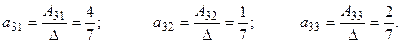 Так как надо найти сумму элементов 3-ей строки матрицы , достаточно определить алгебраические дополнения для 3-ей строки матрицы :