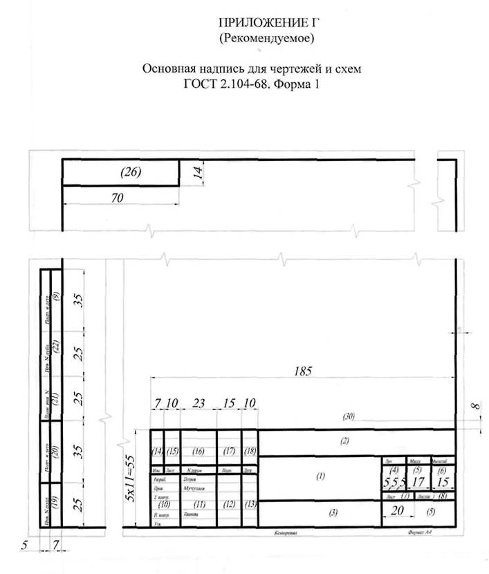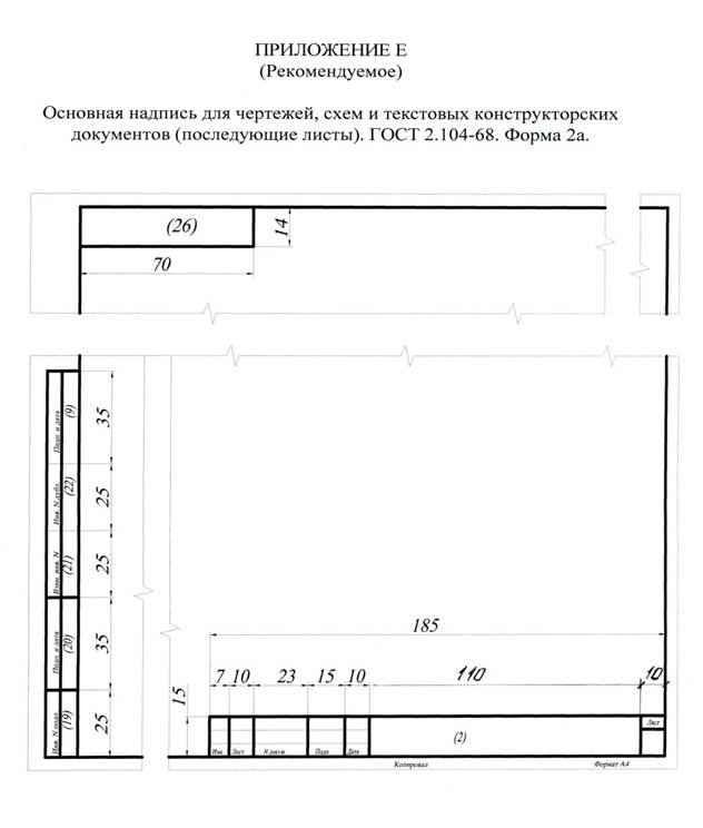 , в нижней части листа выполняется основная надпись (штамп) в соответствии с ГОСТ 2.104-68 (форма 2). На последующих листах пояснительной записки основная надпись выполняется по форме 2а.