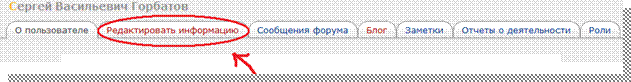 После изменения пароля вернитесь в главное окно редактирование профиля (Рисунок 3) и перейдите на вкладку «Редактировать информацию» (Рисунок 5).