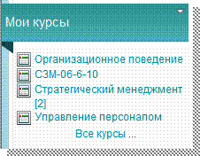 После авторизации и внесения изменений в свой профиль можно начинать работать в системе. Слева под блоком «Основное меню» появится блок «Мои курсы», где находится список курсов, которые Вы будете изучать в текущем учебном году (Рисунок 6).