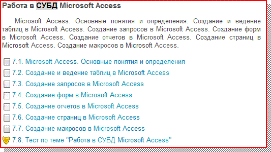 Их также можно распечатать и работать с твердой копией. Вы можете изучать материалы курса в любом порядке, но желательно придерживаться заданной преподавателем последовательности, т.к. изучение некоторых материалов предполагает знание уже пройденных.