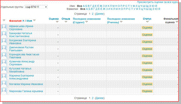 Все результаты по представленным Вами заданиям, после того как их оценил преподаватель, можно просмотреть в инструменте «Оценки» (рис. 28).
