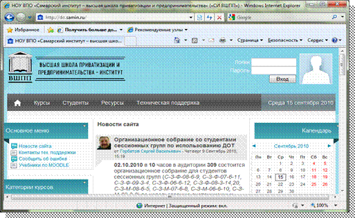 Рисунок 1 Главная страница сайта СДО MOODLE "СИ ВШПП"