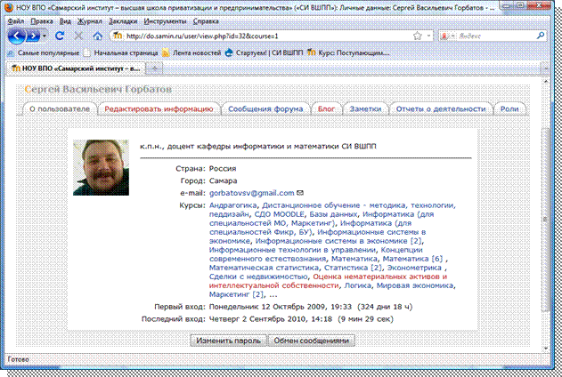Рисунок 2 Пример успешной авторизации на сайте СДО MOODLE