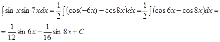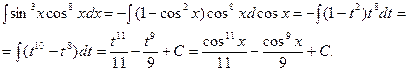 нечетное (в данном случае ), поэтому интеграл можно вычислить следующим образом. Преобразуем подынтегральное выражение