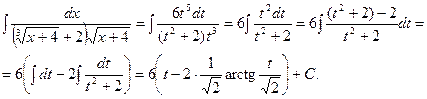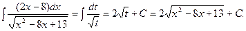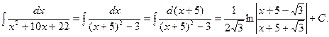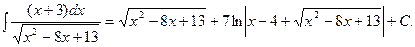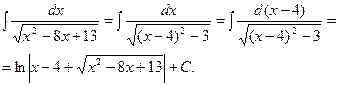 Второй интеграл преобразуем путем выделения полного квадрата в подкоренном выражении: