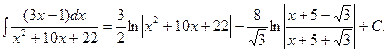 Второй интеграл преобразуем, выделив в знаменателе полный квадрат: . Тогда с учетом формулы (14) получим