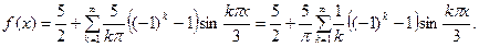 Разложение в ряд Фурье по синусам функции , заданной на отрезке :