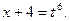 – наименьшее общее кратное знаменателей , позволяет избавиться от иррациональности. В данном случае Наименьшее общее кратное этих чисел равно 6. Применяем подстановку