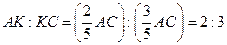 Геометрически решение данной задачи можно представить в очень наглядном виде. Однако сделать это сложнее, чем решить задачу алгебраическим способом. Чтобы придумать геометрическое решение, нужно понять, что отношение хорошо представить наглядно, когда отрезок AB разделен на равные части, число которых кратно трем, а отношение хорошо представляется наглядно – когда число равных частей кратно пяти.