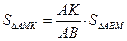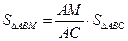 и отношение , можно очень быстро вычислить площадь треугольника AMC