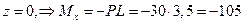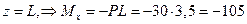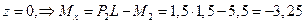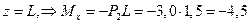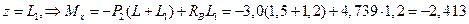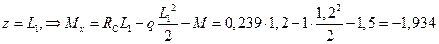 В точке приложен момент реакции , который действует по часовой стрелке, но его значение отрицательное, следовательно, на эпюре имеем скачок вниз на величину этого момента.