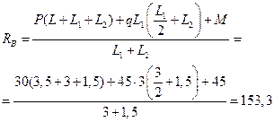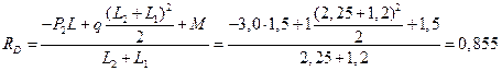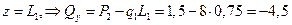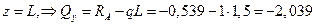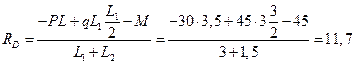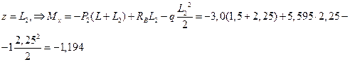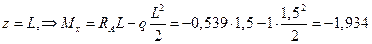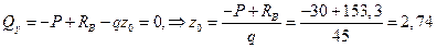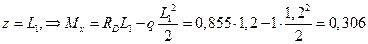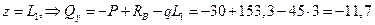 В сечении по опоре сосредоточена реакция , на схеме направленная вверх, но ее значение отрицательное . Знак минус означает, что фактически сосредоточенная сила направлена вниз. Соответственно на эпюре имеем скачок вниз на величину этой реакции.
