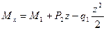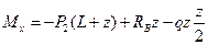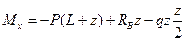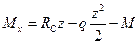 На участке имеется погонная нагрузка , направленная вниз, соответственно перерезывающая сила на этом участке убывает. Функция изгибающего момента - уравнение квадратной параболы. На эпюре моментов эта парабола направлена выпуклостью вверх, т.к. погонная нагрузка направлена вниз.