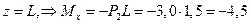В сечении по заделке сосредоточена реакция , на схеме направленная вверх, но ее значение отрицательное . Знак минус означает, что фактически сосредоточенная сила направлена вниз. Соответственно на эпюре имеем скачок вниз на величину этой реакции.