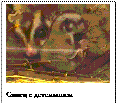 - Самка с детенышами в сумке – детеныши висят на сосках.