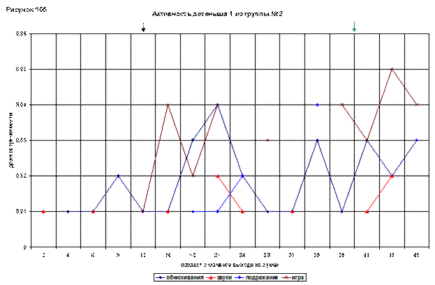 На графике отображена очень высокая доля подражания и игры, начиная с 33(105) дневного возраста.