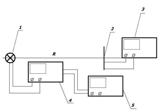 Для измерения потока и силы света, излучаемого линейкой-кластером с 10 светодиодами, была собрана установка в соответствии со схемой изображенной на рисунке 2, с линейкой кластером в качестве источника света.