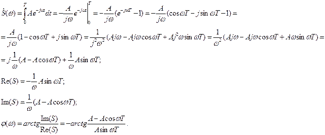 - Для заданного сигнала S(t) найти спектральную плотность, используя интеграл Фурье. Найти АЧХ спектра |S(w)| и ФЧХ спектра Q(w), построить графики, сделать оценки сигнала.