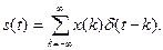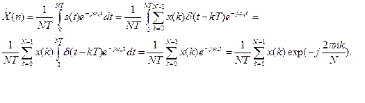 Такая последовательность полностью описывается конечным набором чисел, в качестве которого можно взять произвольный фрагмент длиной N, например {x(k), k=0, 1, …, N-1}. Поставленный в соответствии этой последовательности сигнал из смещенных по времени дельта-функций: