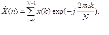 В выражении (1.2) реальный масштаб времени фигурирует только в множителе 1/T перед оператором суммирования. При рассмотрении дискретных последовательностей обычно оперируют номерами отсчетов и спектральных гармоник без привязки к действительному масштабу времени и частоты. Поэтому множитель 1/T (1.2) удаляют, то есть считают частоту дискретизации равной единице. Удаляют обычно и множитель 1/N. Получившееся выражение называется дискретным преобразованием Фурье.