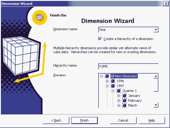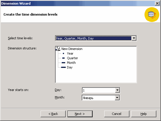 Рис. 6.16. Выбор измерений и мер для локального куба