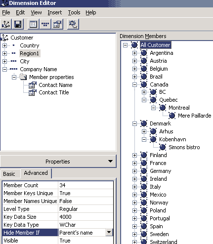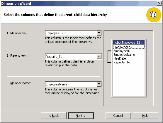 В качестве альтернативы создадим еще одну иерархию — Employee.Regular, содержащую один уровень Employee_Name; в качестве свойств члена этого уровня выберем поля Hire Date и Reports_To.